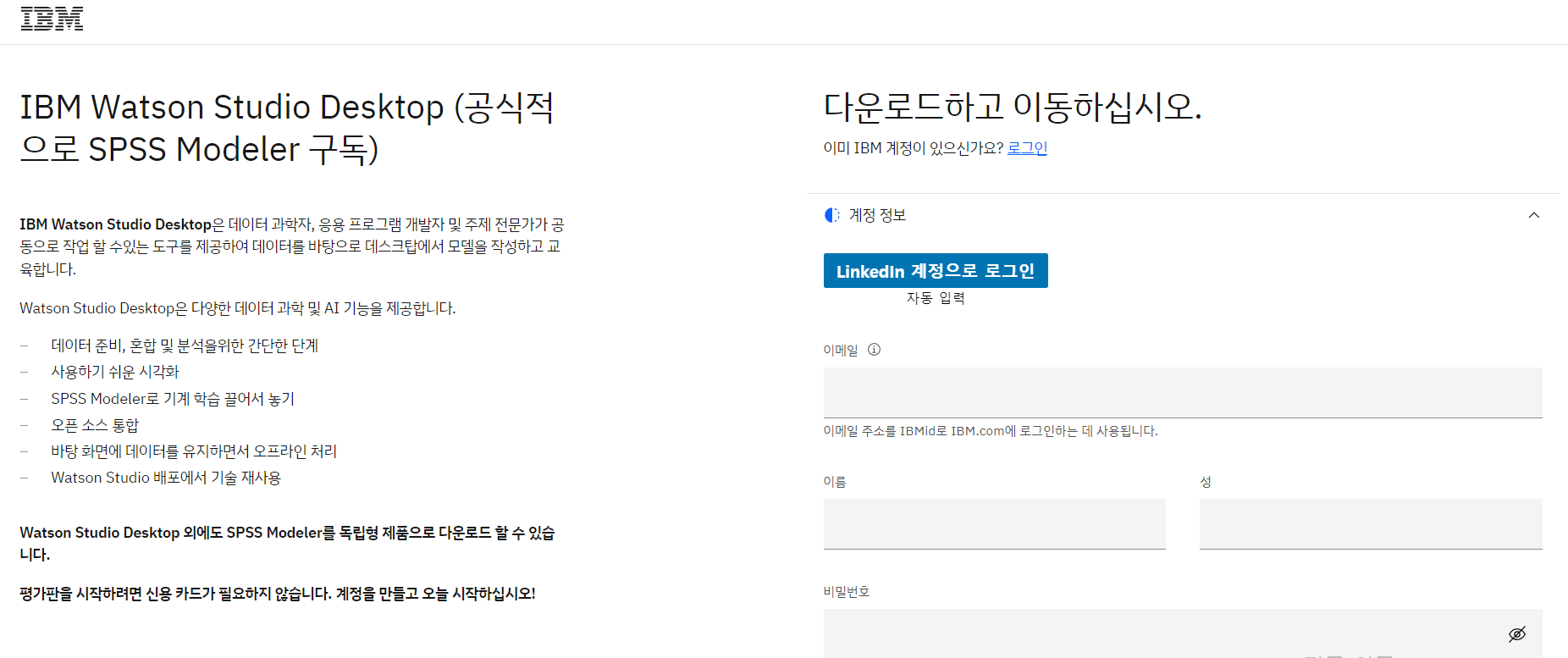 IBM 계정을 생성해야 이용이 가능하기 때문에 계정을 생성해 주셔야 합니다.