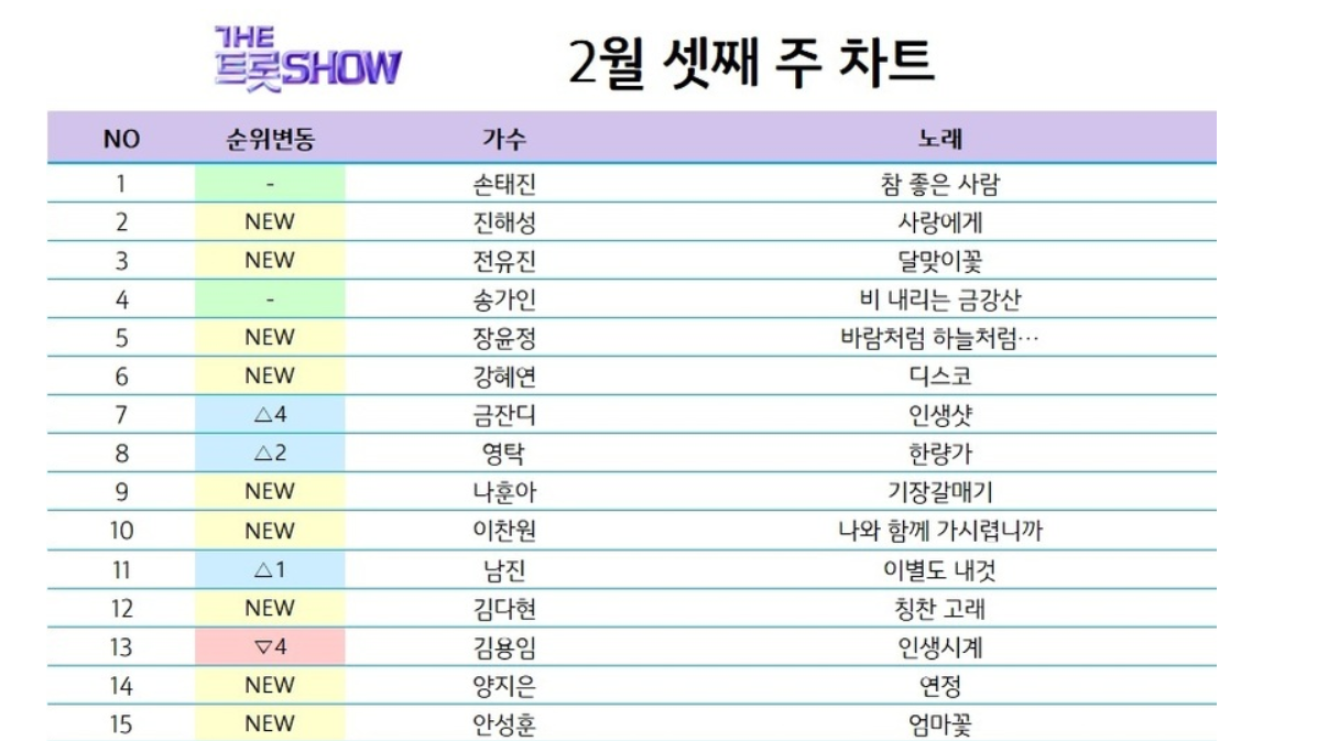 더 트롯쇼 이번주 순위 확인하기