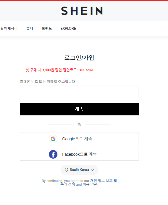 Shein 웹사이트에 로그인하거나 앱을 다운로드하여 계정을 만듭니다.