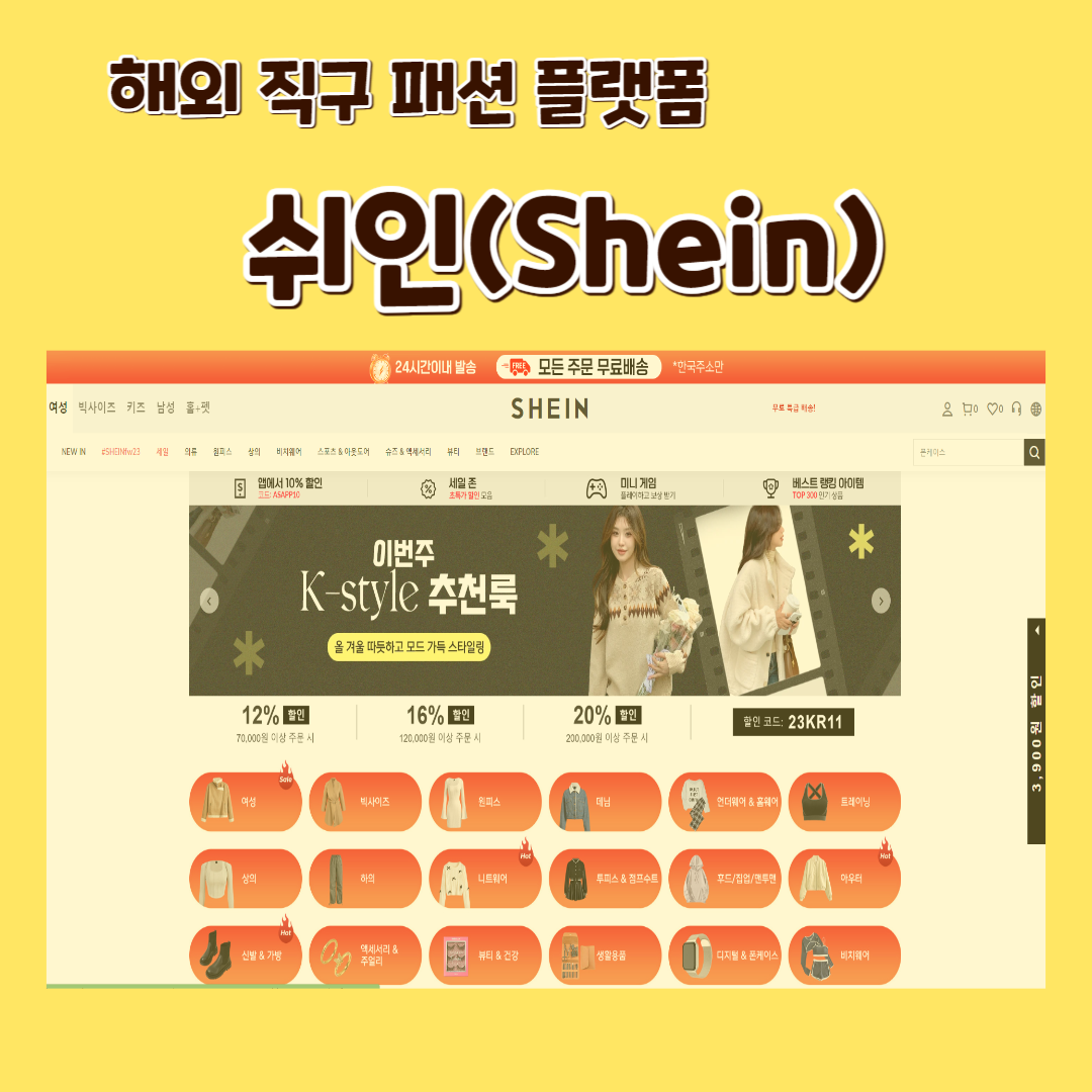 오늘은 중국의 패션 플랫폼인 쉬인(Shein)을 소개해 드리려고 합니다. 우리나라의 다양한 의류 오픈 마켓의 대부분이 동대문에서 사입을 해오거나 중국 1688 또는 쉬인과 같은 사이트에서 저렴하게 물건을 구입해 온 뒤 마진을 붙여 판매를 하고 있습니다.