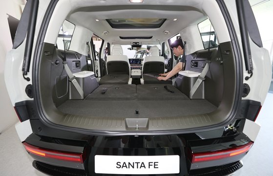 싼타페의 주 고객층이 3,40대 가정이다 보니 캠핑과 차박, 유모차를 싣고도 넉넉한 수납공간을 확보할 수 있게 디자인되어 있는 것을 알 수 있습니다.