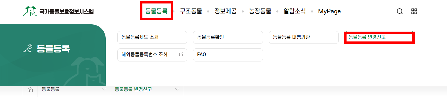 동물등록번호 변경신고 방법