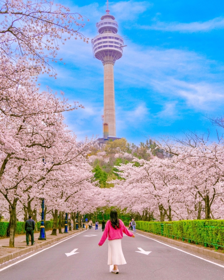 - 83타워를 배경으로 벚꽃과 함께 사진 찍기 좋습니다.