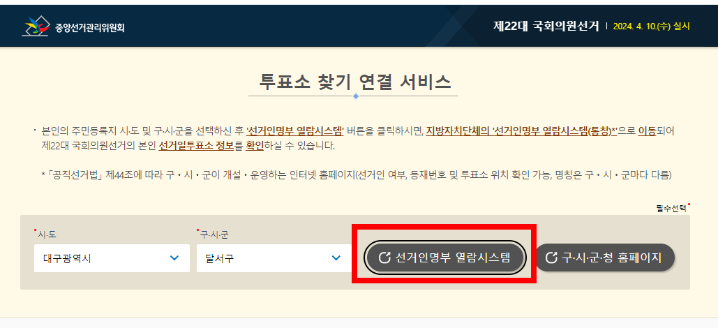 그러면 투표장소와 등재번호를 알 수 있습니다.