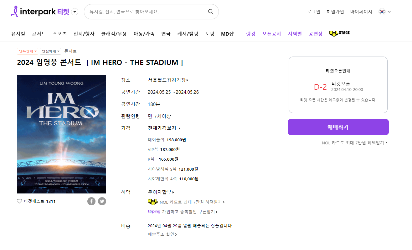 오늘은 2024 임영웅 콘서트 IM HERO - THE STADIUM 일정 및 예매방법, 티켓 오픈 시간에 대해 자세히 알려드리겠습니다. 티케팅에 성공하셔서 효도하셨으면 좋겠습니다.