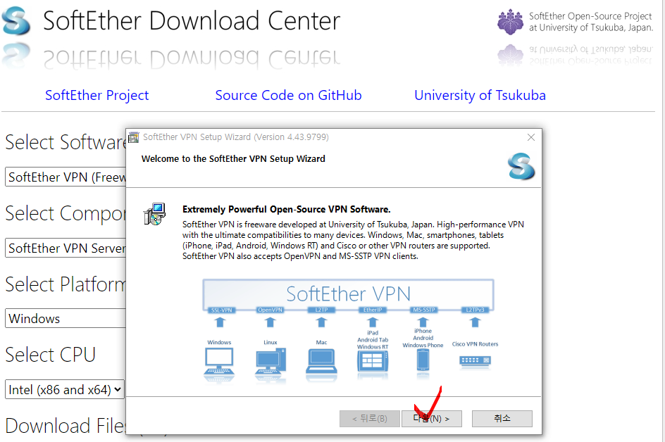 아래 바로가기를 클릭하면 SotfEther VPN 다운로드 사이트로 바로 이동을 합니다.