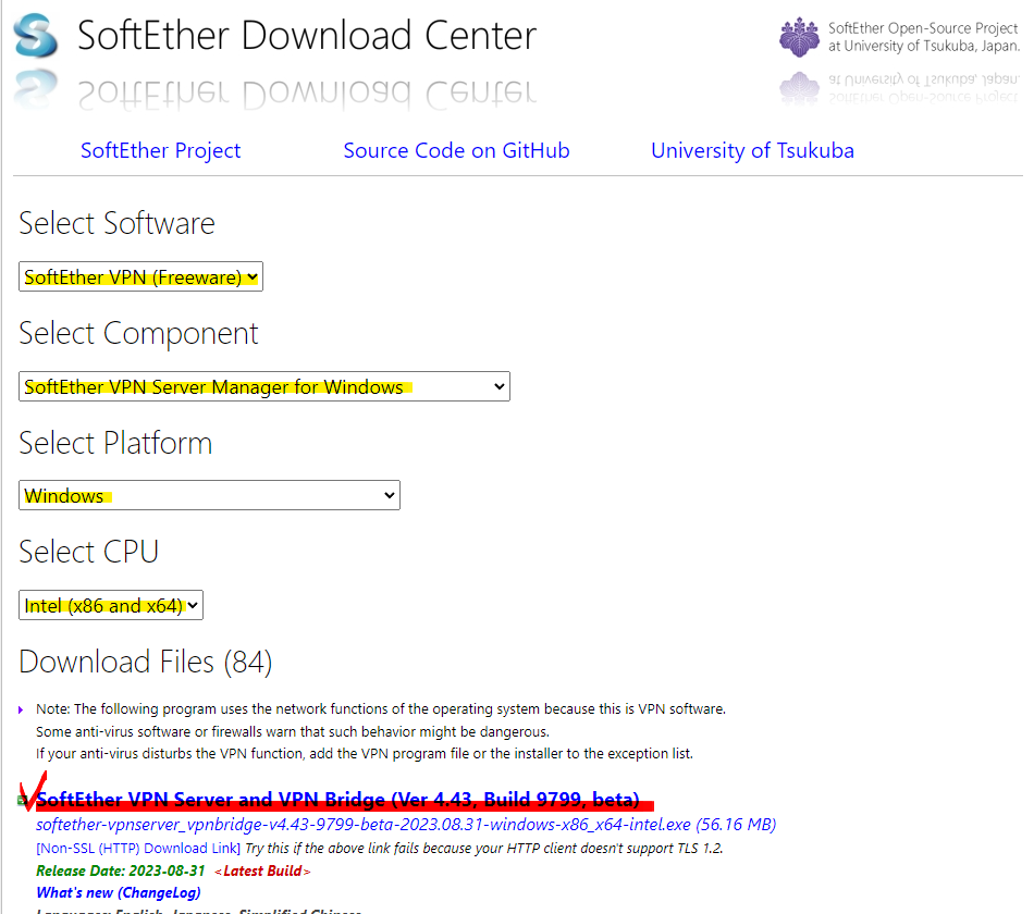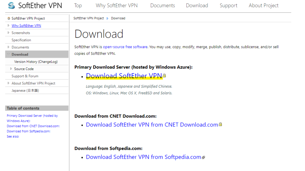 Download SoftEther VPN을 클릭하고 다운을 받습니다.