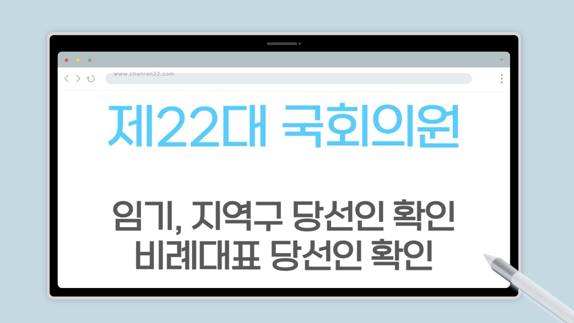 4월 10일 제22대 국회의원 선거로 뽑힌 국회의원 300명 (지역구 254명, 비례대표 46명)의 임기와 각 정당의 비례대표 당선인을 소개해 드리겠습니다.