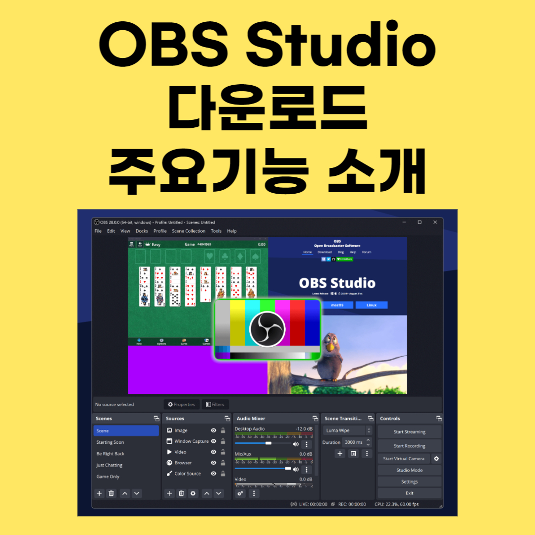 유튜브를 비롯한 각종 인터넷 방송에서 필수 프로그램으로 많이 활용되고 있는 OBS Studio를 무료로 다운받고 사용하는 방법을 살펴보겠습니다.