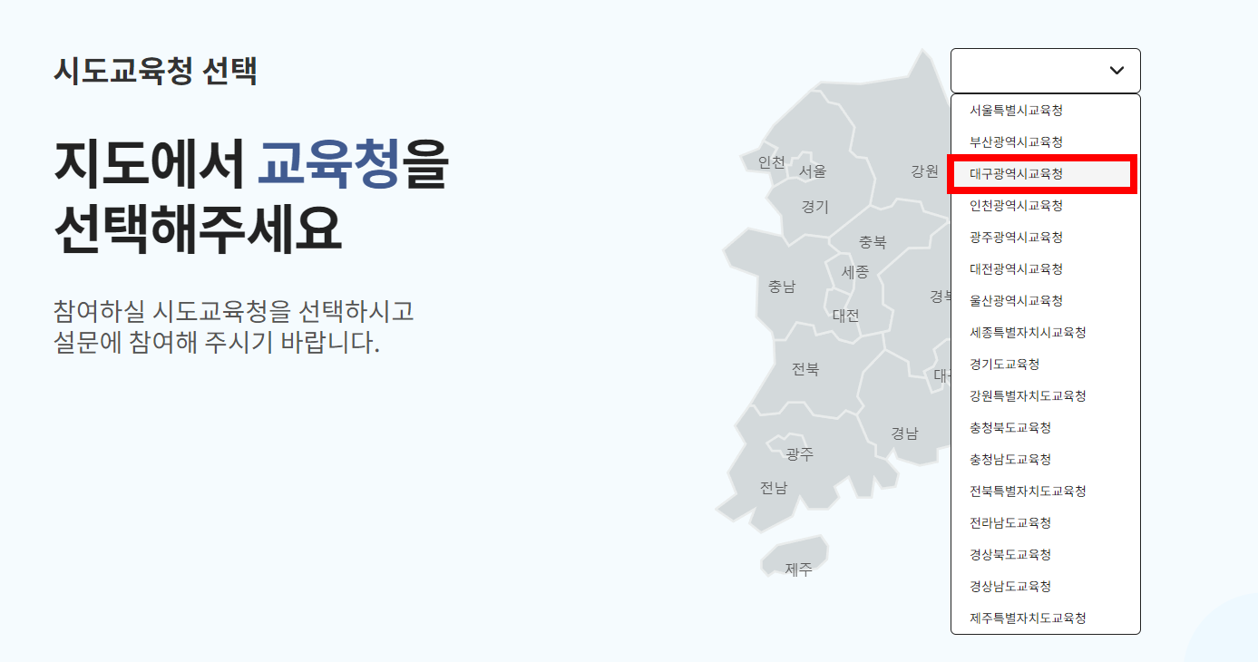 2️⃣ 본인이 다니는 학교 소속의 시,도 교육청을 선택합니다.