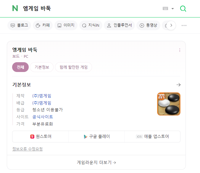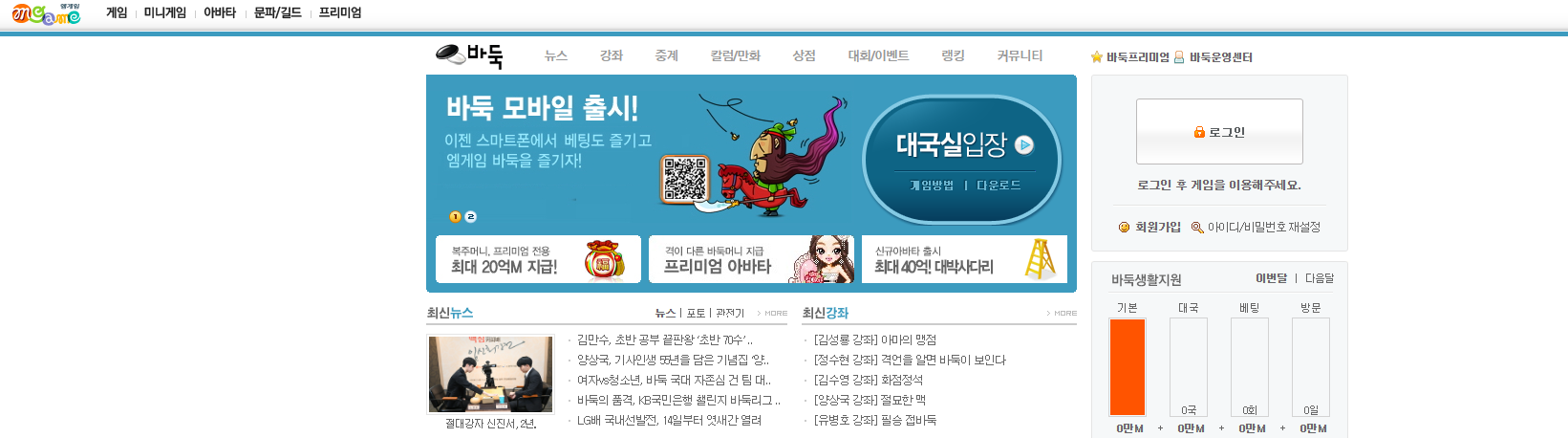 먼저, 포털사이트에 '엠게임 바둑'이라고 검색하거나 위의 바로가기 버튼을 클릭합니다.