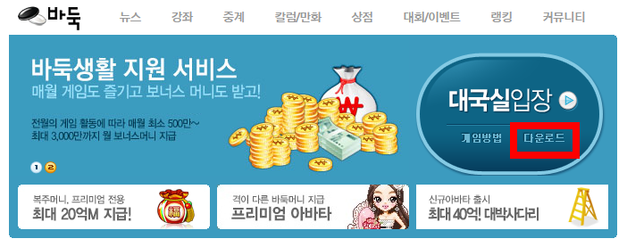 대국실 입장 버튼 밑에 작게 보이는 '다운로드'를 클릭해주세요.