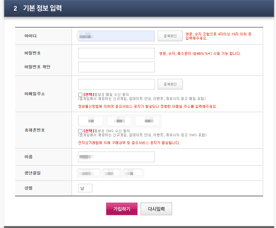 정보들을 입력하고 가입하기 버튼을 클릭하면 회원가입이 끝납니다.