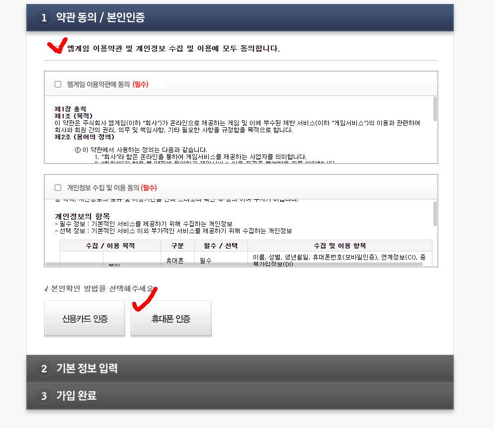저는 본인확인 방법으로 휴대폰 인증을 선택해서 가입을 진행했습니다.