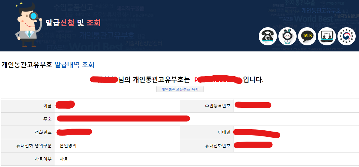 개인통관번호 발급내역 조회 및 재발급