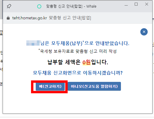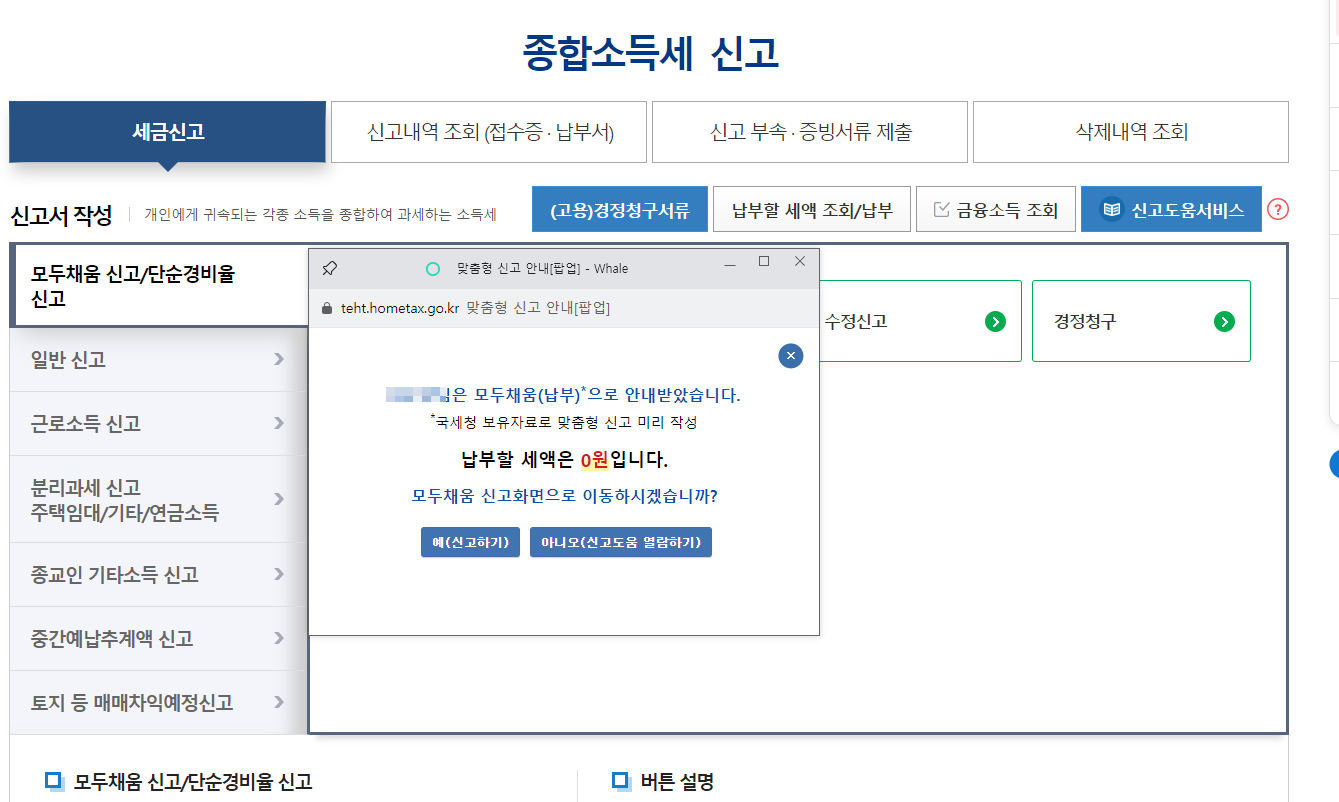 로그인을 하시면 본인이 올해 납부할 종합소득세가 얼마인지 팝업창으로 확인할 수 있습니다.