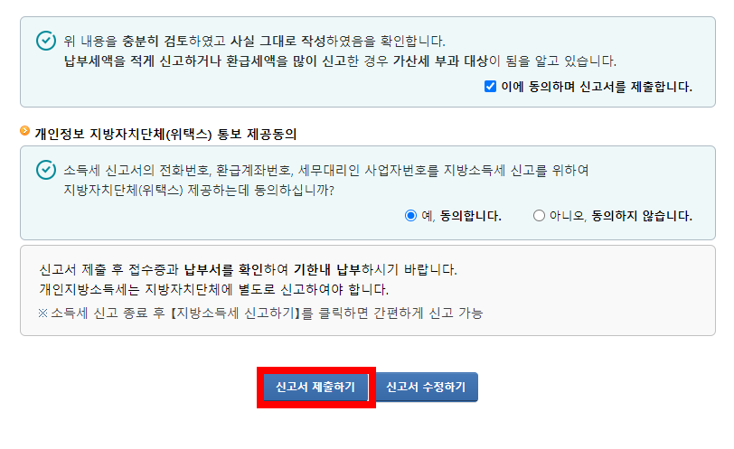 스크롤을 내린 뒤 신고서 제출하기를 클릭하면 됩니다.