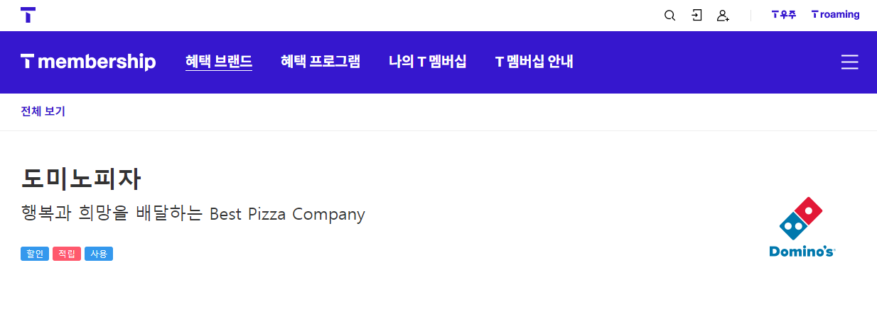 매월 한 번 도미노 피자에서 SKT 고객들을 위해 반값 이벤트를 진행합니다.