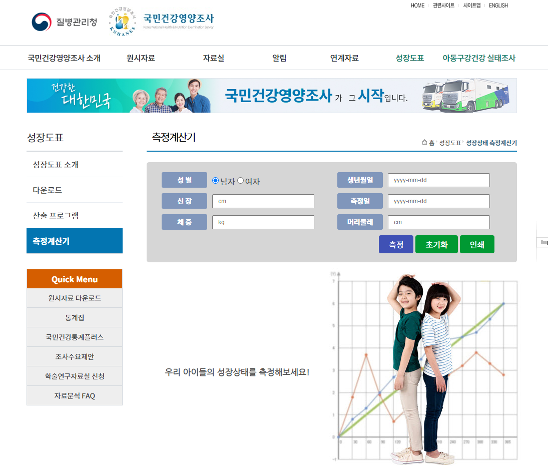 1️⃣ 질병관리청 성장상태 측정 계산기 사이트에 접속합니다.