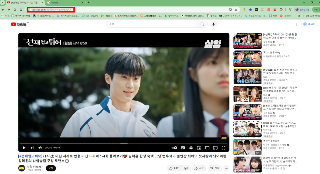 썸네일을 추출하려는 유튜브 주소창을 복사합니다.