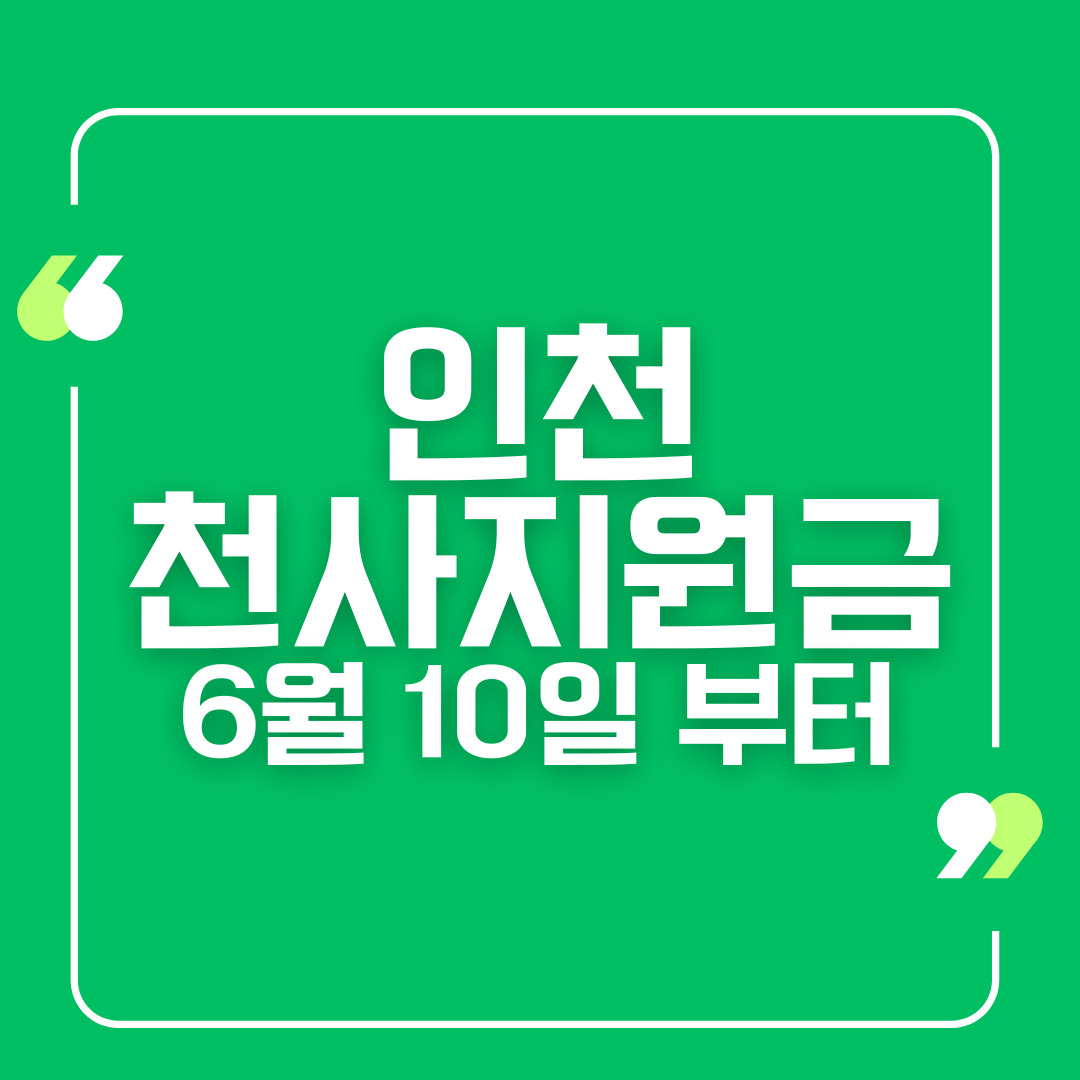 인천 천사지원금 신청은 2024년 6월 10일 오전 9시 부터 가능합니다.