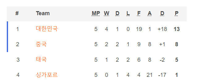 그래서 중국 축구 언론이 대한민국에 참패하여 태국과 순위가 바뀌지 않을까 우려의 목소리가 나오고 있다고 하는데요. 싱가포르전 처럼 큰 점수 차로 대승을 했으면 좋겠습니다.