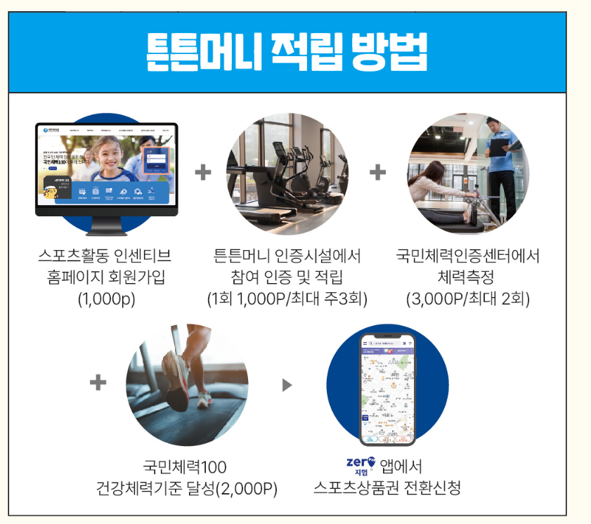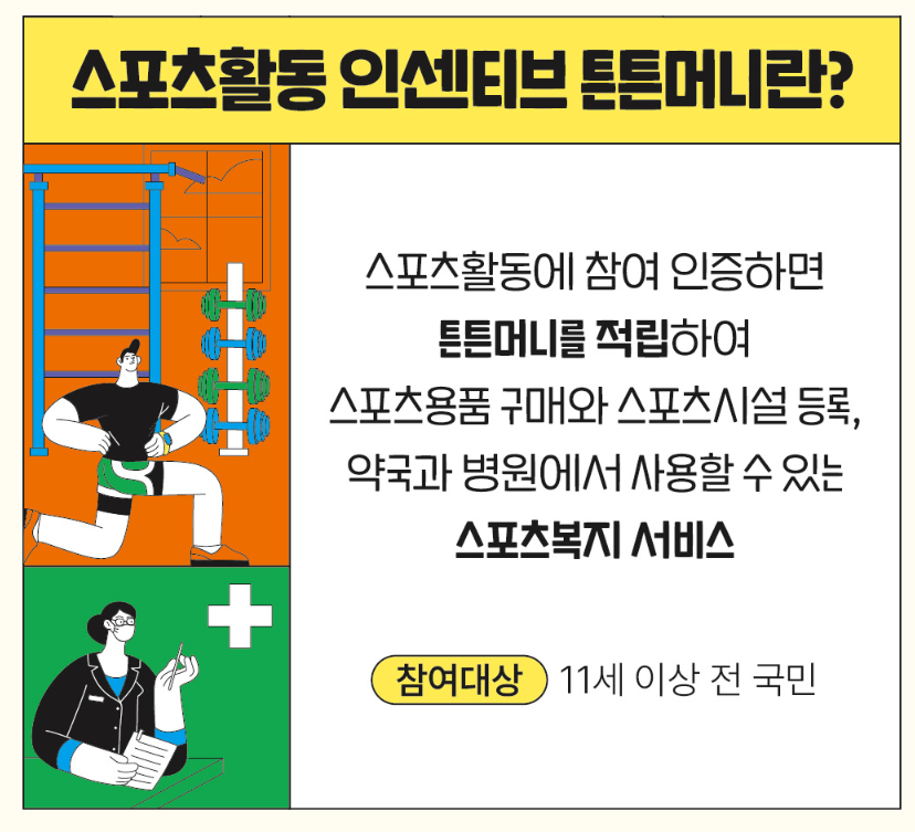 포스팅을 통해 스포츠 활동에 참여한 뒤 인증하면 포인트를 지급받을 수 있는 서비스인 튼튼머니에 대해 대상과 적립 및 사용방법, 인증시설 확인 방법 등에 대해 자세히 알려드리겠습니다.