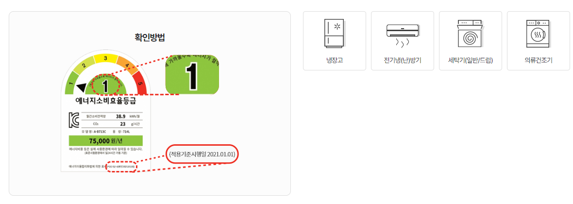 ✅ 구매한 신규 기기의 에너지 효율등급을 확인할 수 있는 라벨 사진