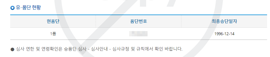 회원가입을 끝낸 뒤 티콘사이트에 로그인을 해서 마이페이지를 클릭하면 자격정보란에 유/품단 현황에서 자신의 품증 또는 단증의 번호와 최초승단일자를 확인할 수 있습니다.