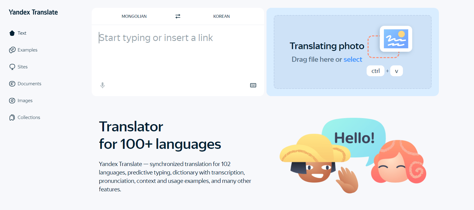 러시아어 기반의 얀덱스 번역기는 몽골어 번역에 강점을 가지고 있습니다.