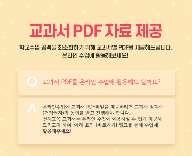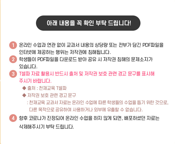 온라인 수업에 교과서 PDF 파일을 제공하려면 교과서 발행사의 동의를 받아야 한다는 점 유의해주시구요.