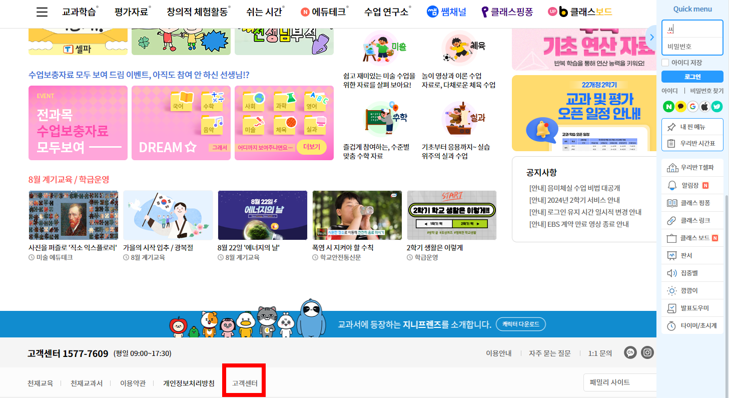 그 다음 티셀파 사이트에 접속해줍니다. 홈페이지에 접속한 뒤 스크롤을 쭉 내려서 고객센터를 찾아주세요.