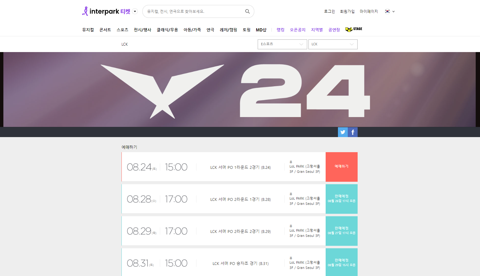 2024 LCK 서머 결승 티켓 예매
