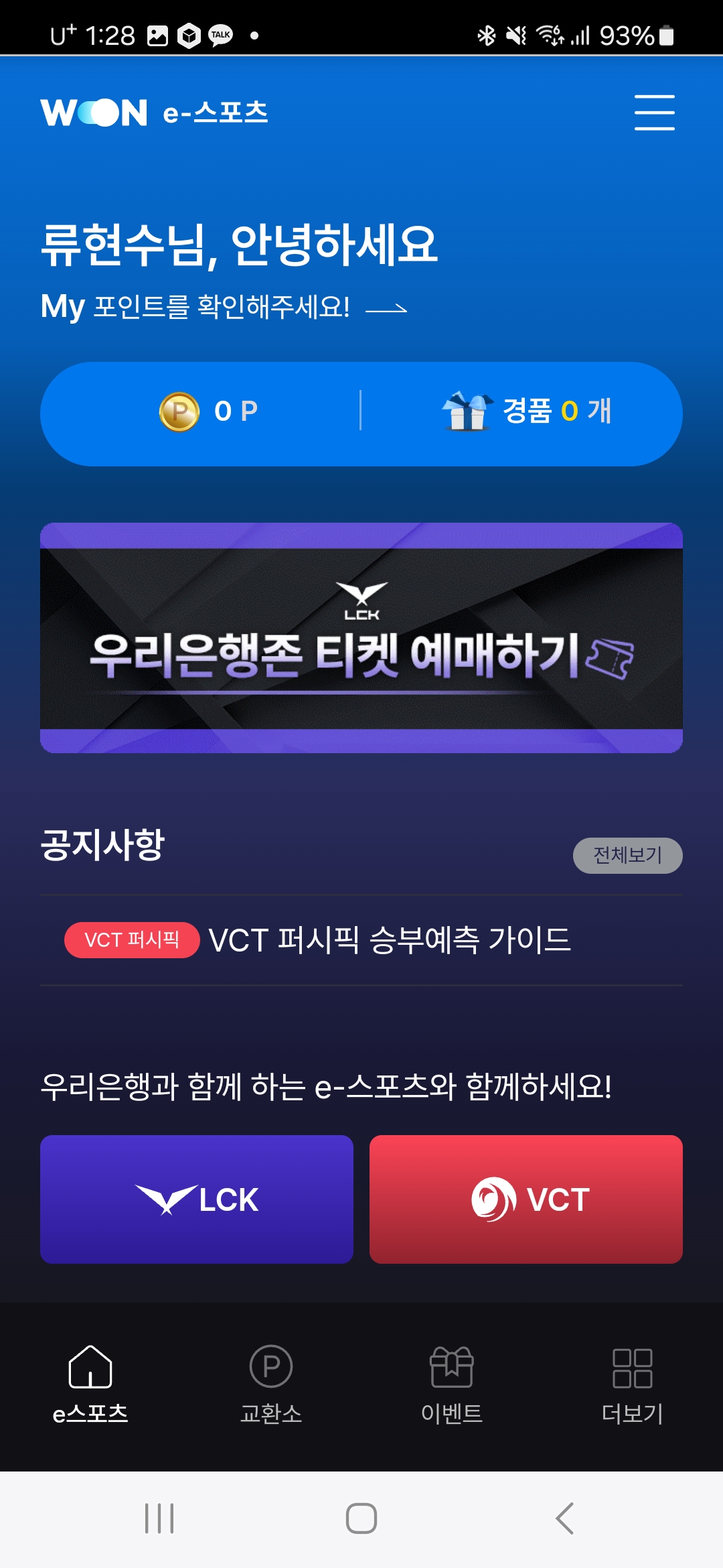 그 다음 LCK티켓 예매에서 예매하기 클릭 > 우리은행존 티켓 예매하기를 클릭해주세요.