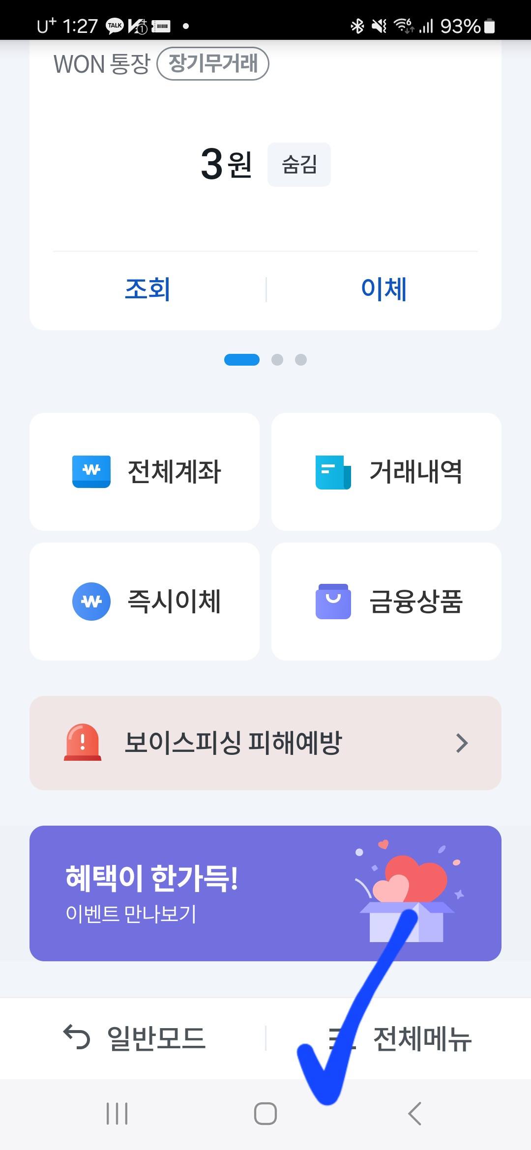 먼저 우리WON뱅킹 통장 어플을 실행합니다.