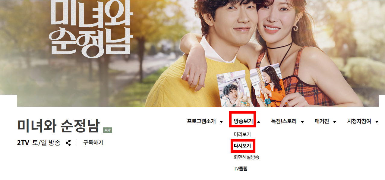 미녀와 순정남 무료 다시보기 방법이 궁금하시다면 아래 포스팅을 참고해주세요!