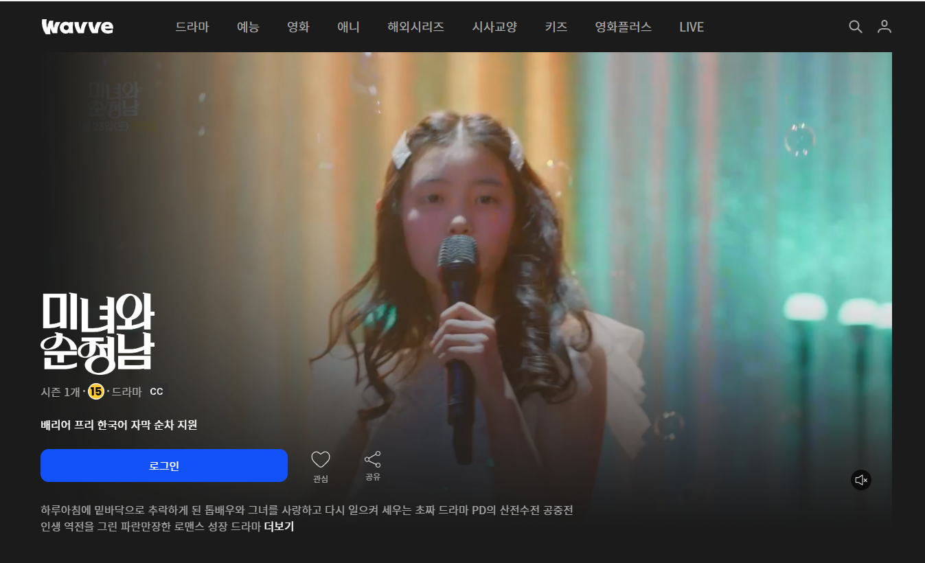 미녀와 순정남은 웨이브를 통해 다시 보기를 할 수 도 있습니다.