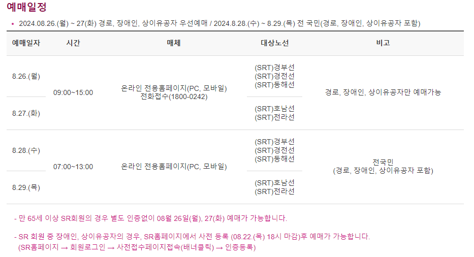 🚄 우선 예매기간 ( 8월 26일 ~ 27일)