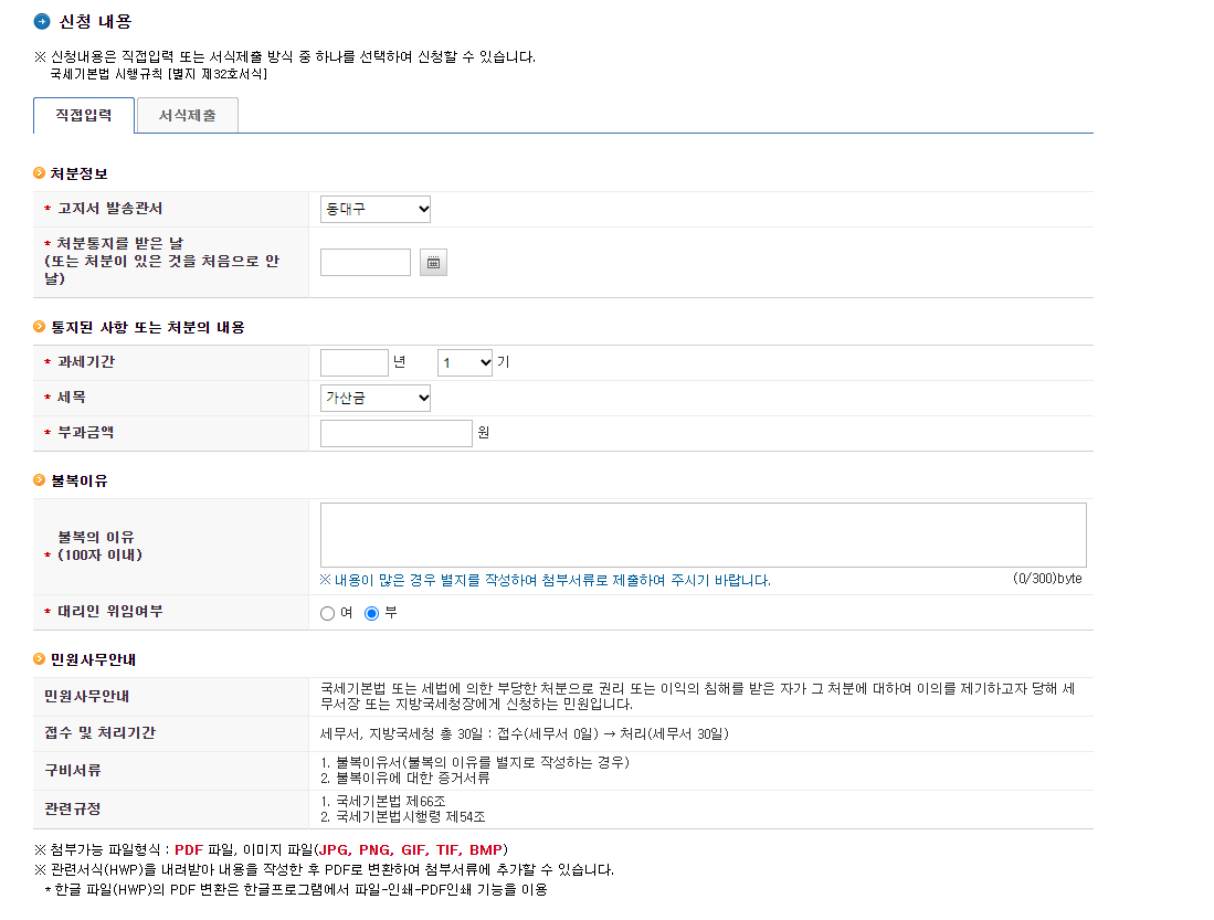 1️⃣ 이의신청서 작성 : 국세청 홈페이지에서 이의신청서를 다운받아 작성합니다. 다운로드가 어려운 경우 세무서에서 서류를 받아 직접 작성하면 됩니다.