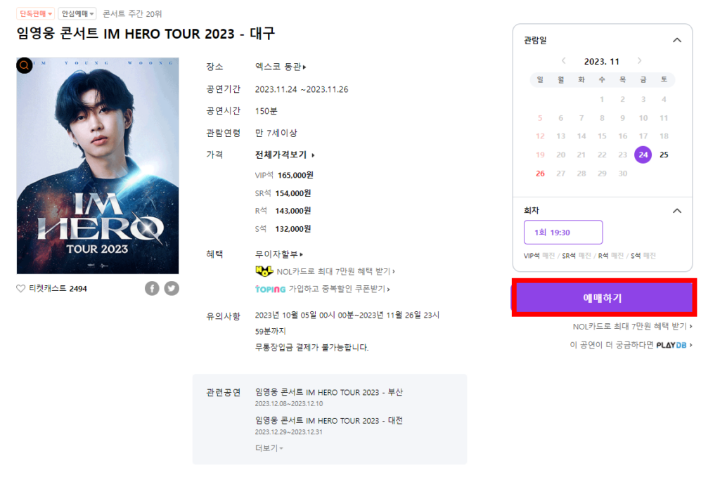 2023 임영웅 IM HERO 콘서트 일정, 예매방법