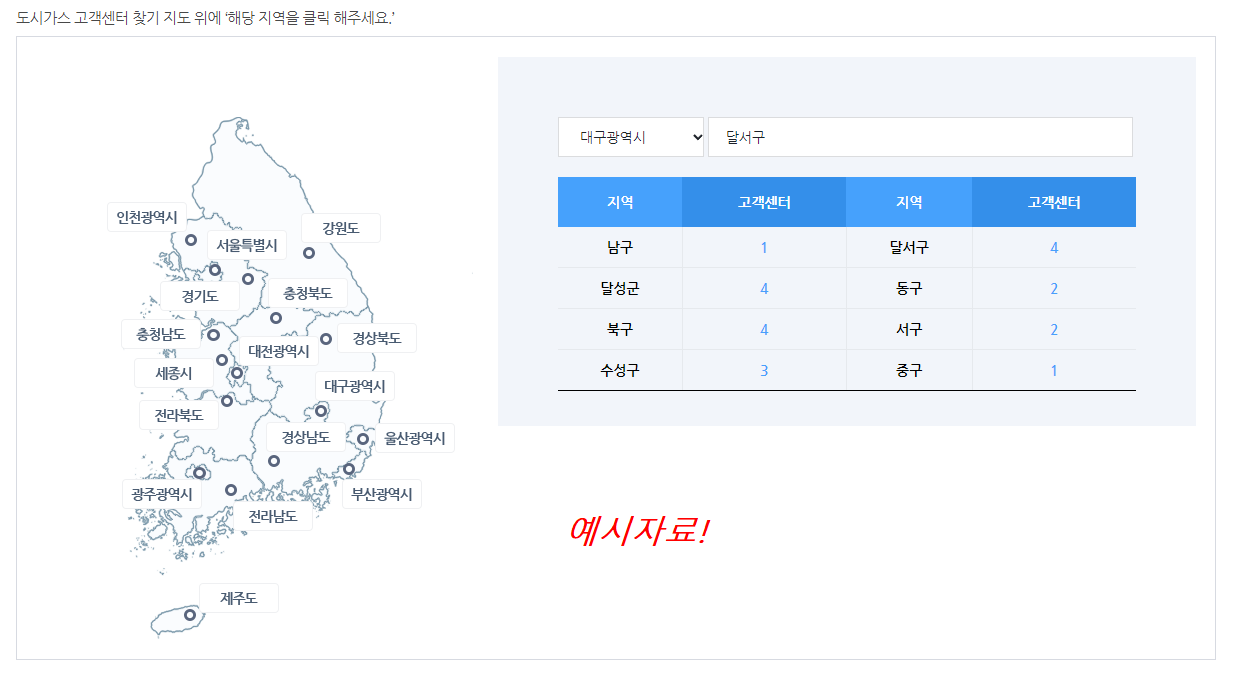 저는 제가 살고 있는 대구광역시의 고객센터 전화번호를 확인해보았습니다.