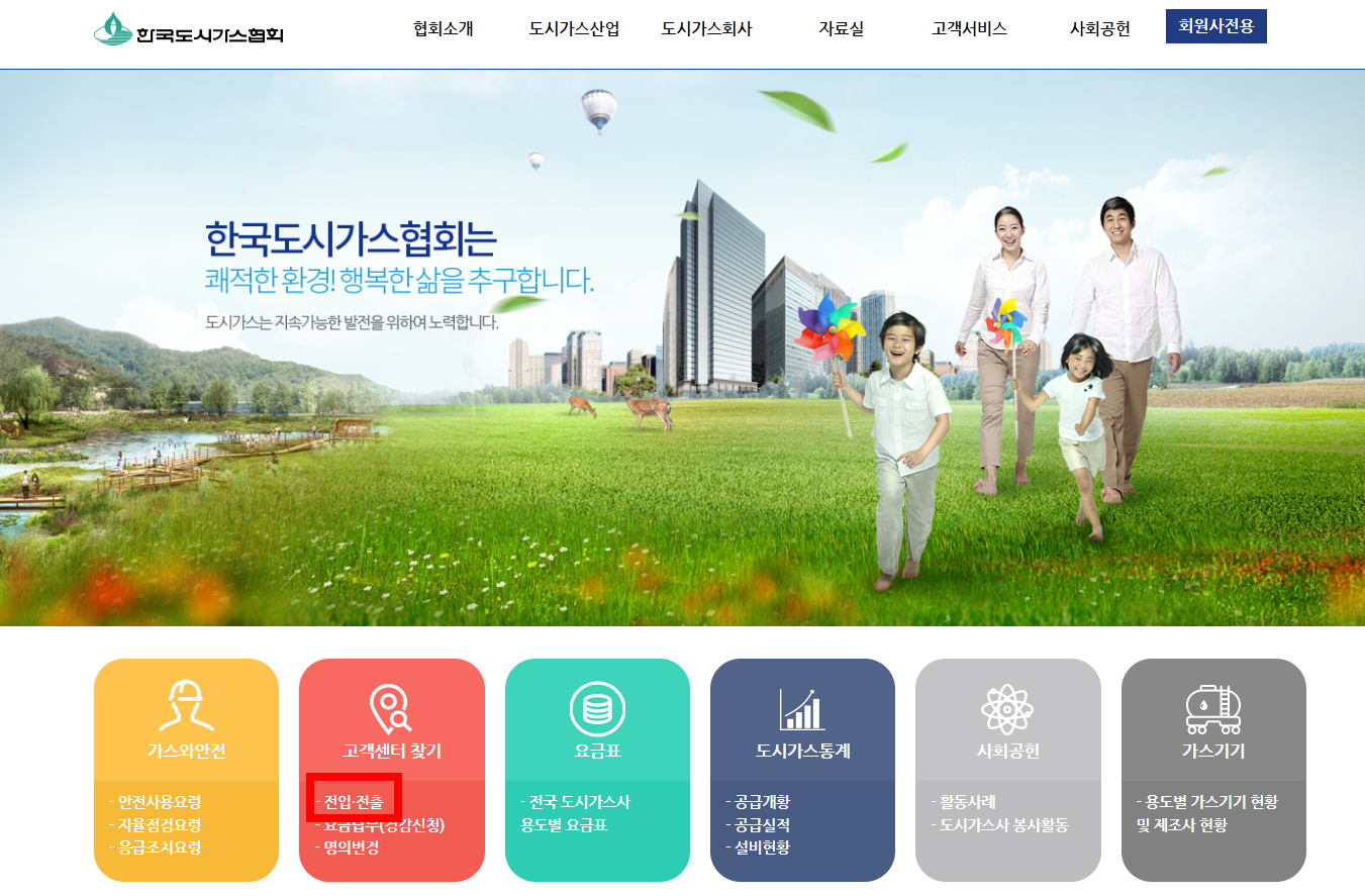 그 다음 포털 사이트에서 도시가스 공급업체를 검색한 뒤 접속하여 전입신고를 진행하시면 됩니다.
