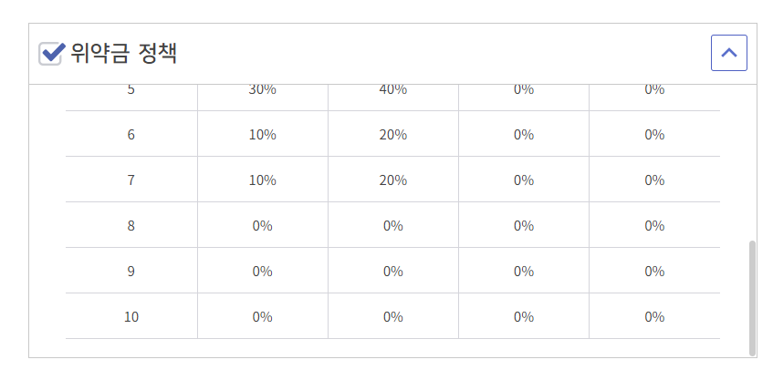 위약금 정책이 궁금했는데 예약약관에 잘 나와있었습니다. 8일 전 까지는 위약금이 발생하지 않는다는 것을 확인할 수 있었습니다.