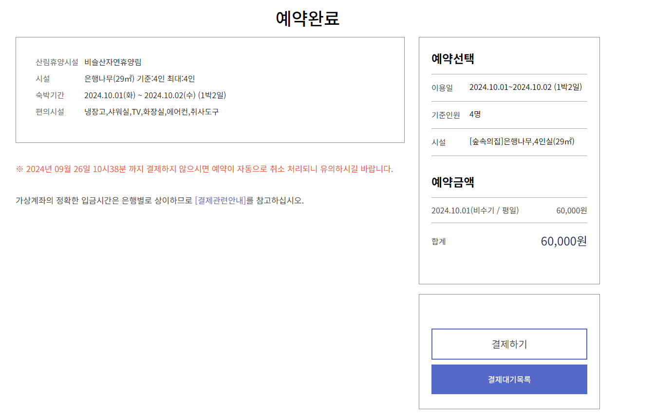 국립자연휴양림 예약 취소 환불에 대해 궁금해하시는 분들이 많으시던데 일주일 전에는 취소를 하셔야 전액환불을 받을 수 있습니다.