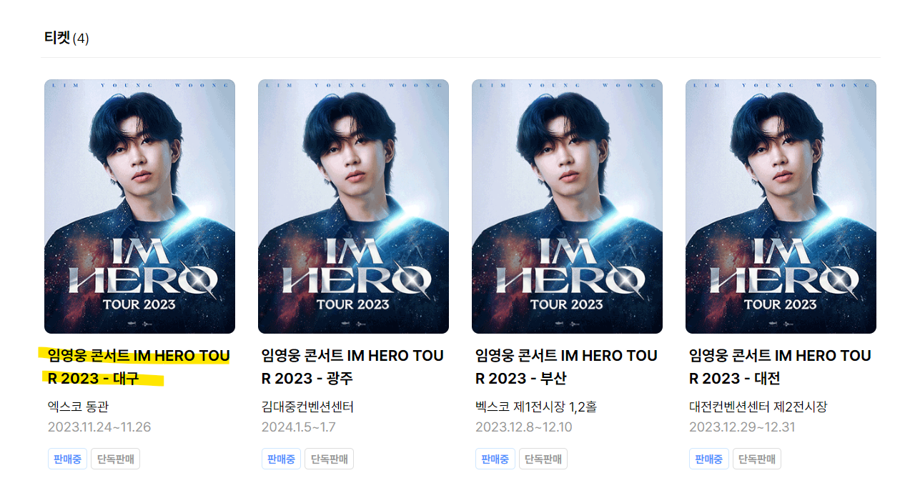 3. 임영웅 대구 콘서트를 클릭합니다.