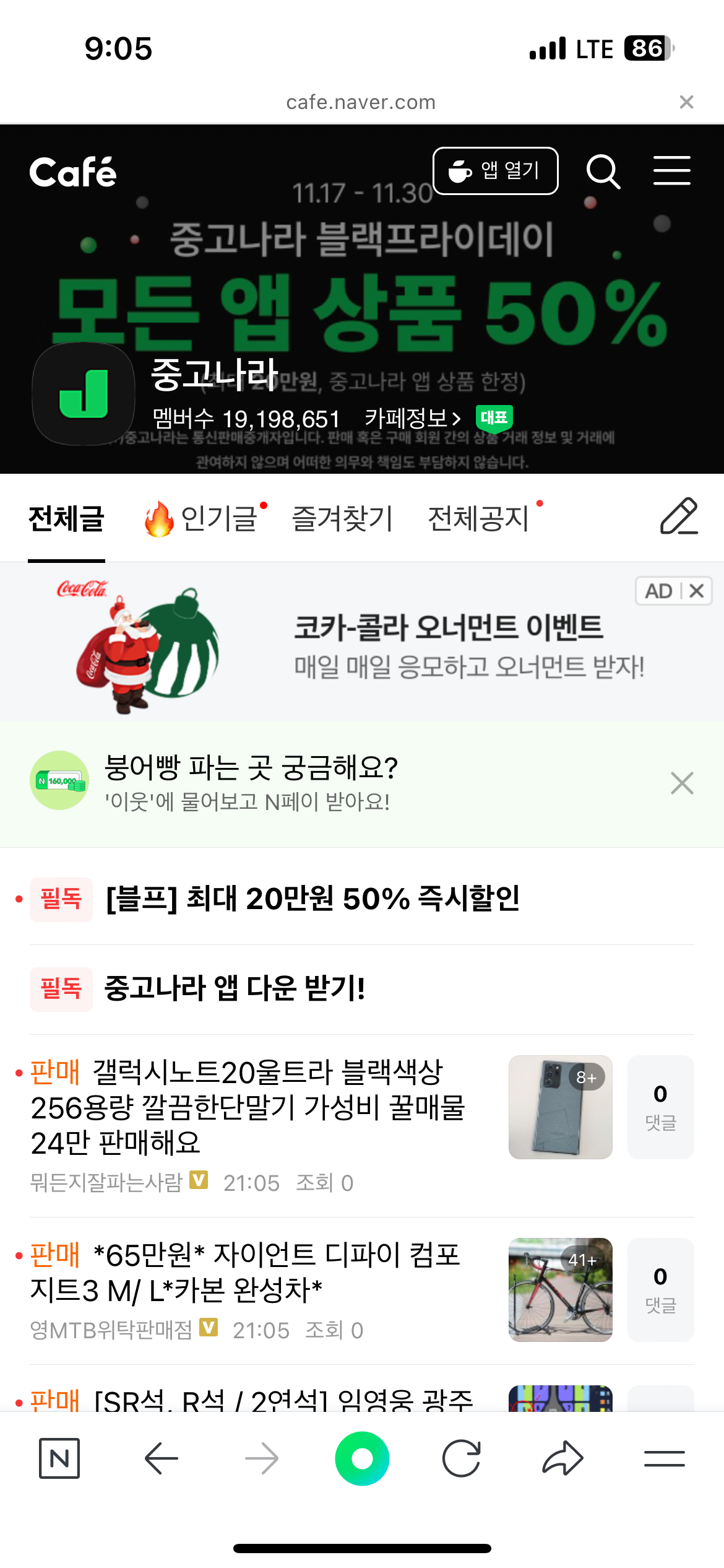 우리나라에서 가장 유명한 네이버 카페 중 한 곳인 '중고나라'를 검색합니다. 그 다음 카페에 가입을 하셔야 합니다. 중고나라를 네이버 카페이기 때문에 네이버 계정이 있어야 합니다. 네이버 계정이 없다면 네이버 회원가입을 해야 합니다.