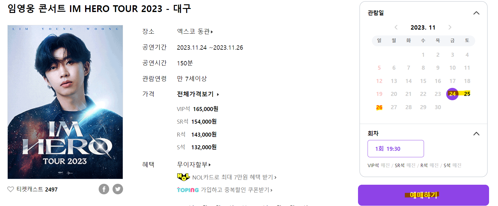 2023.11.21 - [분류 전체보기] - 2023 임영웅 콘서트 IM HERO 일정, 예매일정, 예매방법 안내
