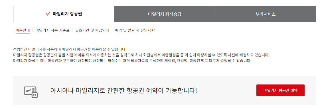 현재 아시아나 마일리지를 사용할 수 있는 곳은 다음과 같습니다.