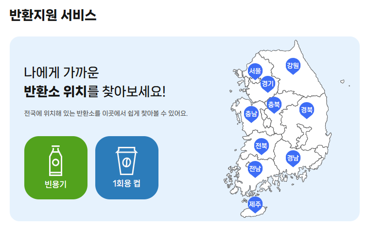 빈병을 수거해도 어디에 가서 바꿔야 할지 모르시겠다면 아래 사이트에 가셔서 위치 기반으로 집 근처에 빈병을 수거해주는 곳을 찾을 수 있습니다.