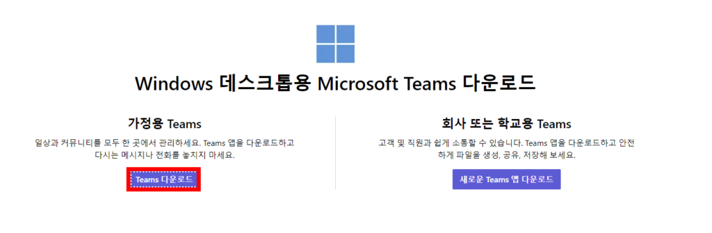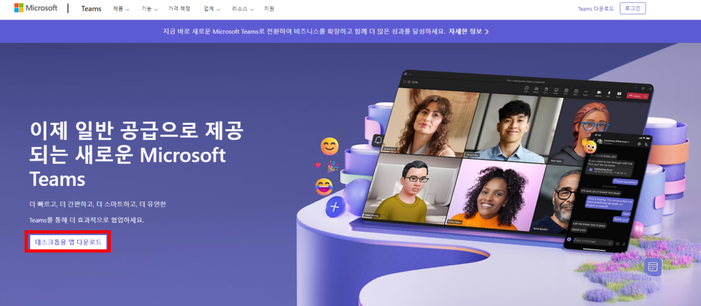 아래 버튼을 클릭하면 마이크로소프트사의 팀즈 홈페이지로 바로 이동합니다.